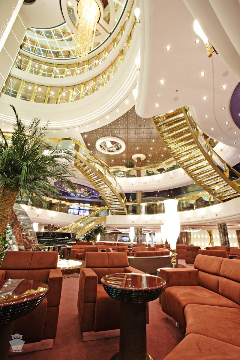 Zábava a ďalšie aktivity: divadlo The Strand Theatre, kino, 4D kino, galéria, knižnica, internetová kaviareň, vinotéka, poker room, fajčiarsky salónik, bary a kluby, obchody a butiky, kasíno Royal Palm, detské centrum a centrum pre mládež, video hry, simulátor F1 a diskotéka Club 33, Yacht Club