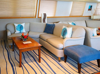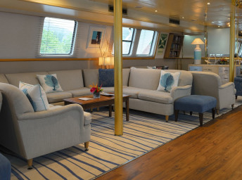 Na hlavnej palube sa nachádza komfortný salón, vybavený pohodlnými kreslami a elegantný bar. Vedľa salónu nájdete knižnicu s výberom kníh v rôznych jazykoch a k dispozícii sú aj rôzne spoločenské hry.
