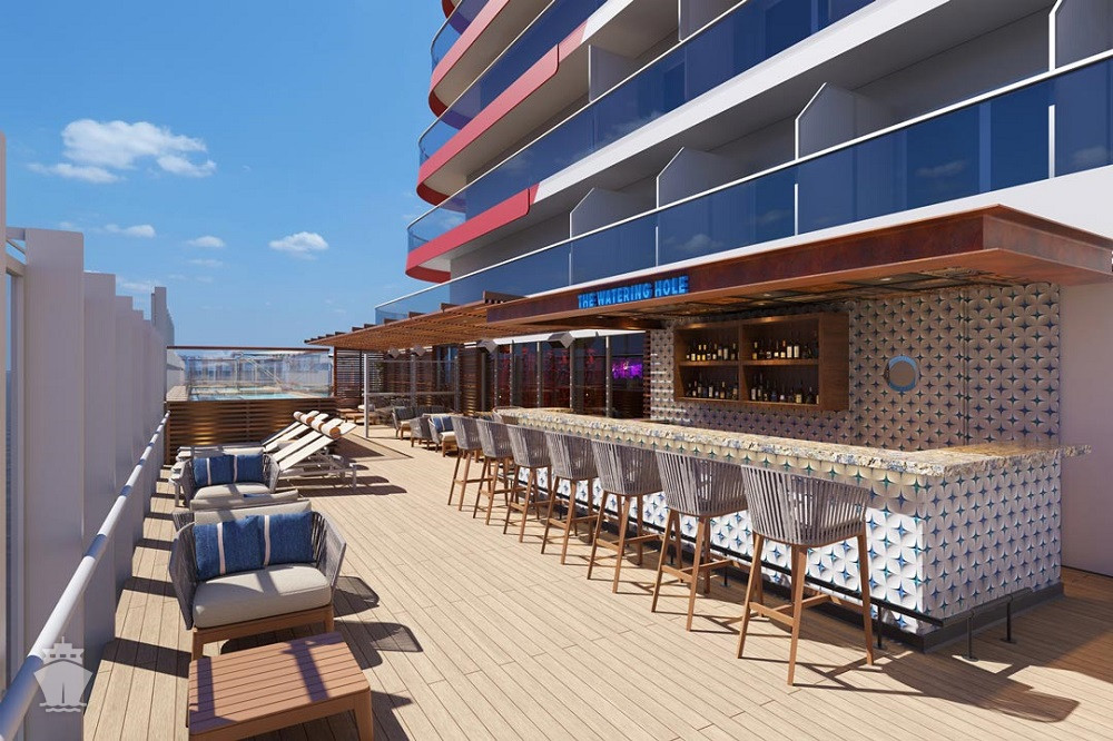 3. Summer Landing: najväčšia oddychová zóna na mori! S bazénom, barbecue v Guy's Pig & Anchor Smokehouse/Brewhouse a pivárňou Parched Pig!