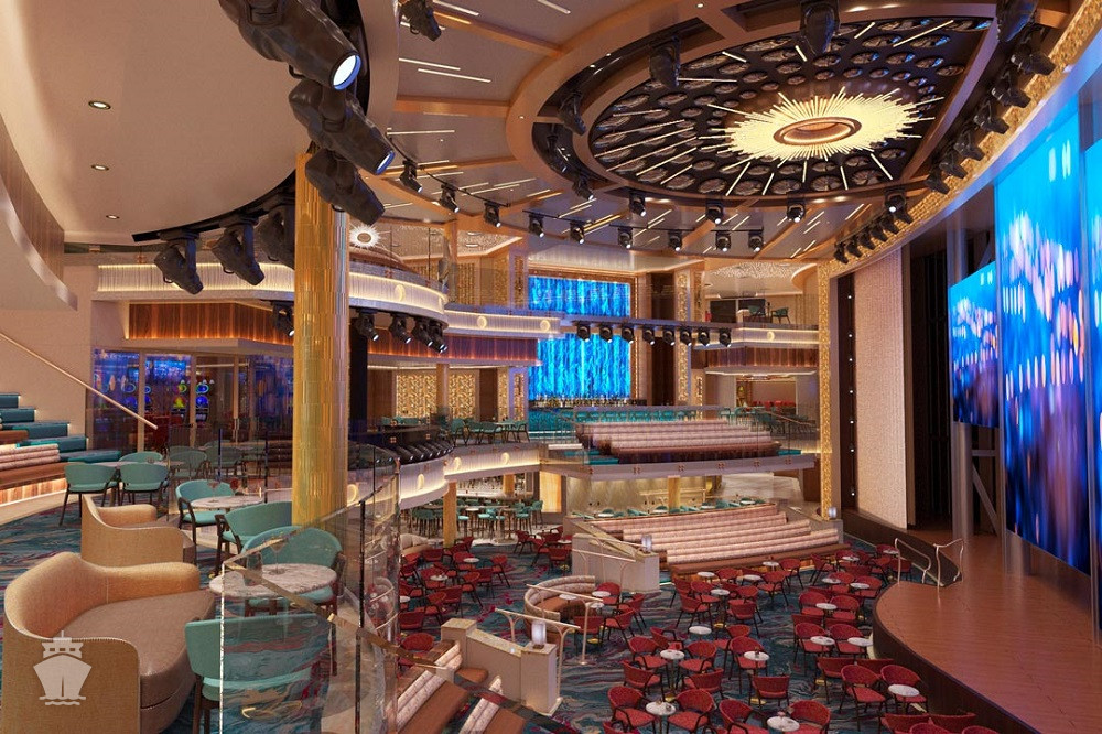 Serenity (18. paluba) 8:00 - 23:00. Oddychová zóna pre dospelých 21+ s bazénom, barom, lehátkami a kreslami a 2 vírivkami.