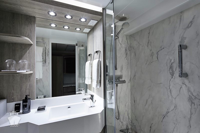 Interér lode je elegantný a pôsobí veľmi príjemne - ladený v tlmených a teplých farebných tónoch; za použitia prestížnych materiálov ako ušľachtilé drevo, sklo a mramor.
