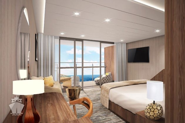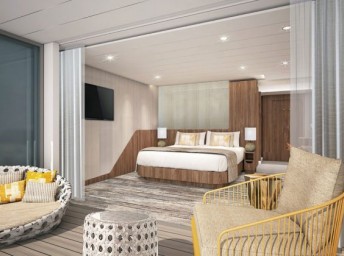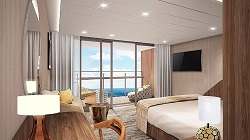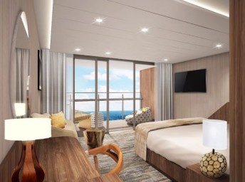 S3 - Sky Suite 23 m² + balkón 8 m². Spálňa s obývacou časťou, kúpeľňa so sprchou. 5. paluba. Max 2 osoby. 16 984 € 8 492 € za osobu