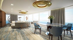 PS - Penthouse Suite 91 m² + balkón od 25 m². Oddelená spálňa a obývačka s jedálenskou časťou, kúpeľňa s vírivkou a sprchou, extra wc, šatník. 5/6. paluba. Max 2 osoby. 42 735 € 14 245 € za osobu