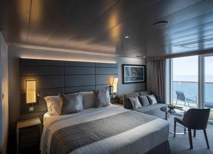 Vonkajšie kajuty Infinite s panoramatickým zasúvacím oknom, ktoré sa po otvorení zmení na sklenenú balustrádu.