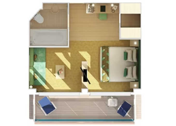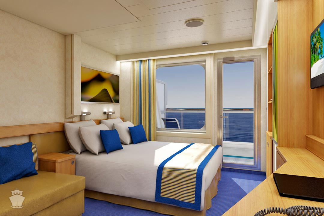 9C - Kajuta s balkónom Premium Vista 21 m² + rohový balkón 7 m². 6,7,8. paluba vzadu. | 2 800 € 1 400 € za osobu |