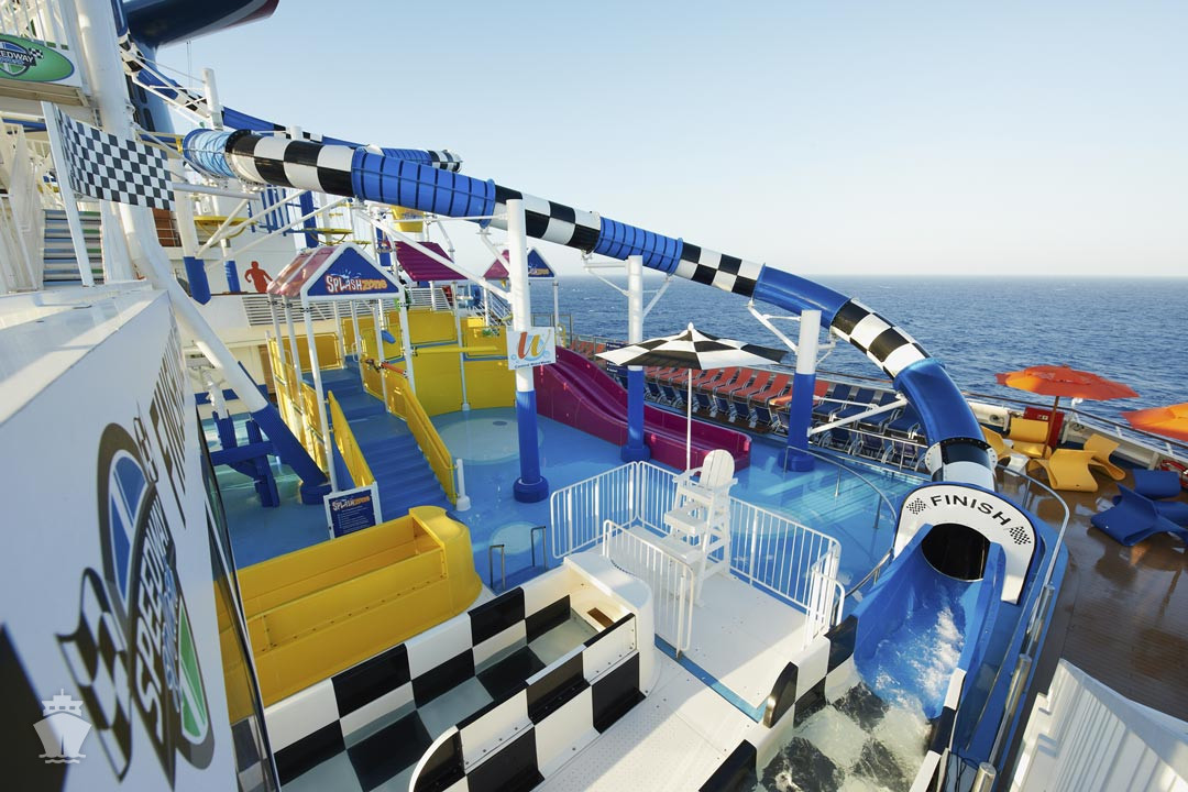 - Využívanie fitness centra, sauny, bežeckej dráhy, bazénov, víriviek, tobogánov a vodného parku (na vybraných lodiach), mini golf, basketbal, volejbal, stolný tenis, knižnica