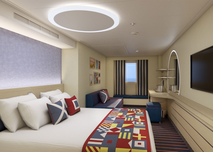 FE - Vonkajšia kajuta Family Harbor 22 m². Neotvárateľné okno / obmedzený výhľad. 4. paluba stred, vzadu. Námorný štýl, špeciálne služby pre rodiny s deťmi. | 1 216 € 608 € za osobu |
