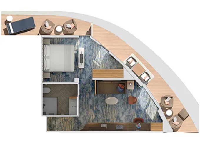 7S - Kajuta s balkónom Cloud 9 Spa Cove 19 m² + balkón s chráneným výhľadom 4 m². 5. paluba vpredu. Voľný vstup do Spa a balíček Cloud 9 Spa. | 1 734 € 867 € za osobu |