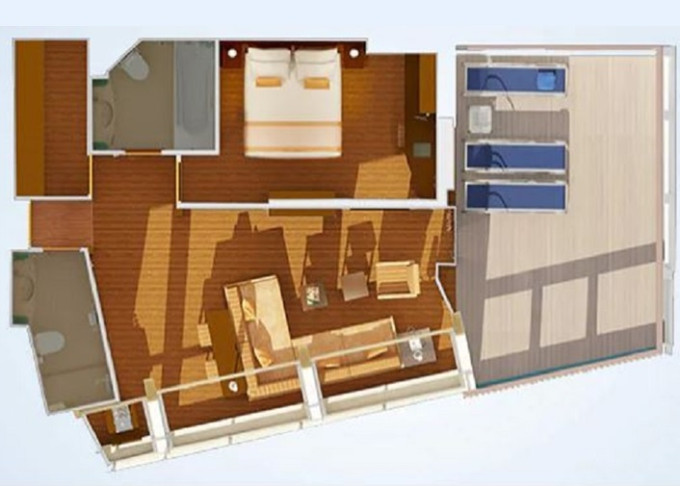 9C - Kajuta s balkónom Premium Vista 17 m² + rohový balkón 7 m². 6,7,8. paluba vzadu. | 1 086 € 543 € za osobu |