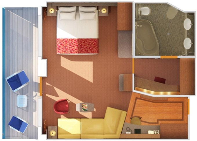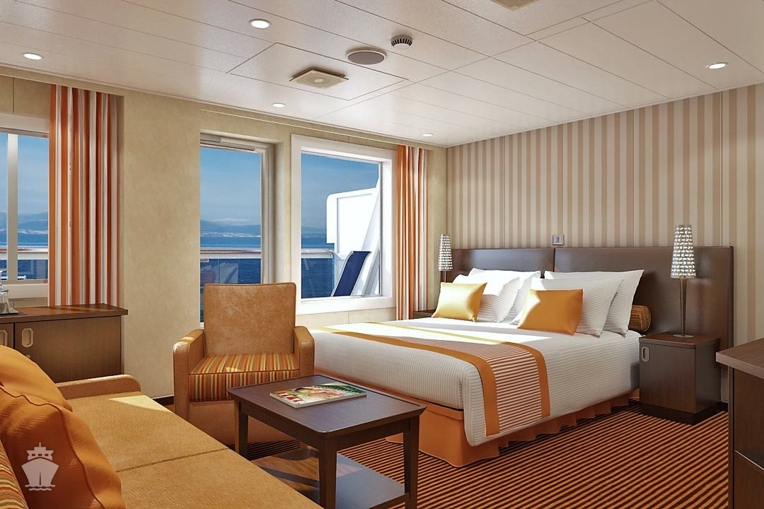 OS - Ocean Suite 26 m² + balkón 6 m². 7. paluba vpredu, stred. Výhody Suite. | 1 324 € 662 € za osobu | ||