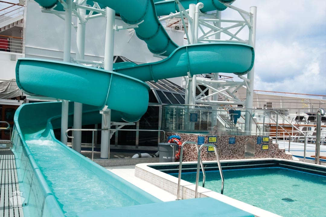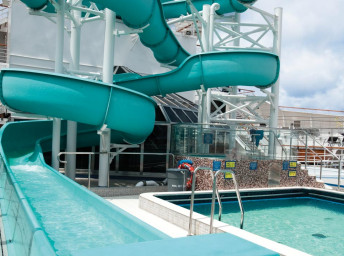 - Využívanie fitness centra, sauny, bežeckej dráhy, bazénov, víriviek, tobogánov a vodného parku (na vybraných lodiach), mini golf, basketbal, volejbal, stolný tenis, knižnica