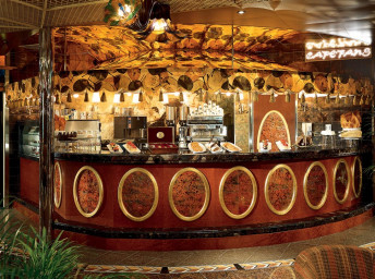 - Čapovaná voda, limonáda, ľadový čaj, káva, čaj, kakao z automatov v hlavnej reštaurácii Main Dining Room a bufetovej 24/7 reštaurácii Lido