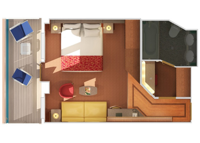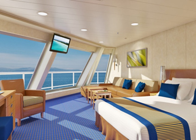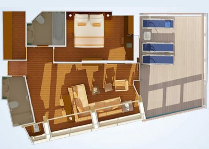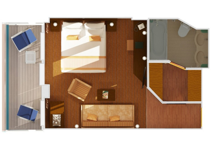 OS - Ocean Suite 25 m² + balkón 6 m². 7. paluba vpredu, stred. Max 4 osoby. Výhody Suite. | 1 324 € 662 € za osobu |