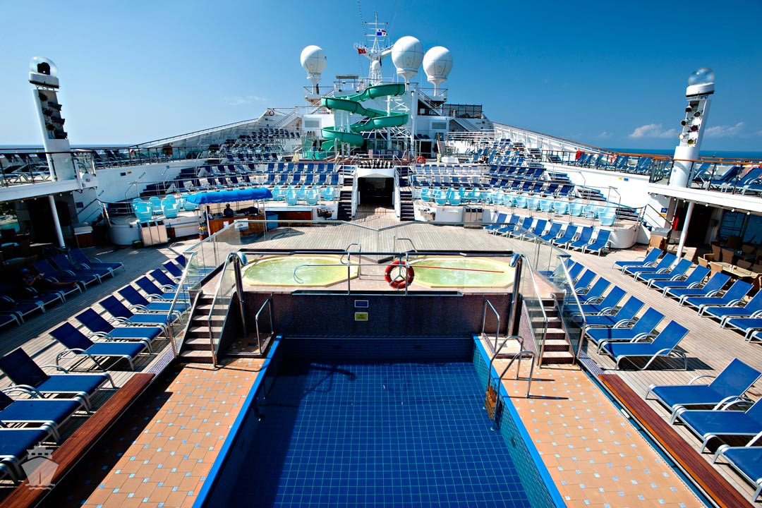 - Využívanie fitness centra, sauny, bežeckej dráhy, bazénov, víriviek, tobogánov a vodného parku (na vybraných lodiach), mini golf, basketbal, volejbal, stolný tenis, knižnica