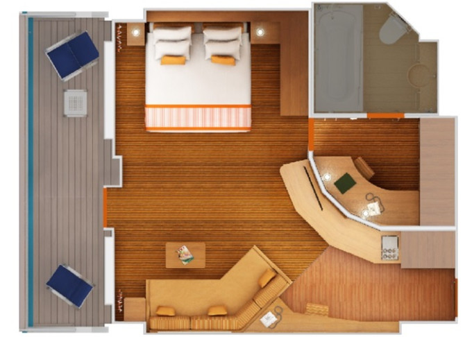| GS - Grand Suite od 31 m² + balkón 7 m². 6. paluba. Výhody Suite. | 1 538 € 769 € za osobu |