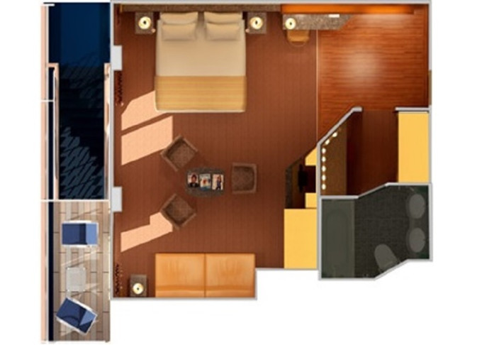 | OB - Junior Suite / obmedzený výhľad 20 m² + balkón s obmedzeným výhľadom 7 m². 11. paluba. Výhody Suite. | 1 000 € 500 € za osobu |