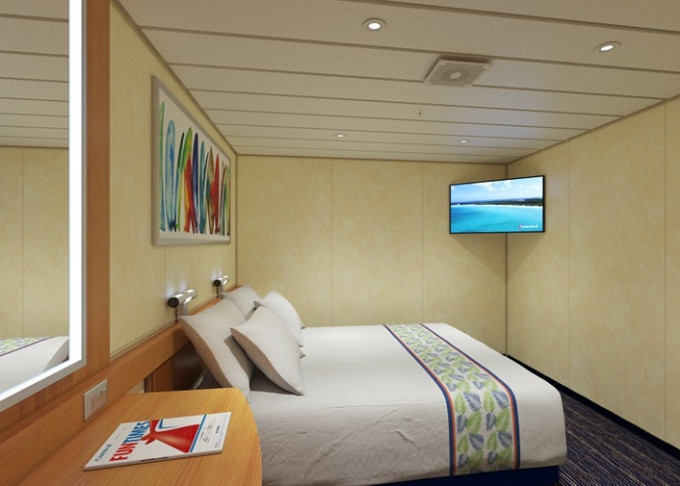 Základné vybavenie všetkých kajút: kúpeľňa so sprchou a WC, TV s plochou obrazovkou, telefón, elektrická zásuvka 110 AC, regulovateľná klimatizácia, postele Carnival Comfort, sušič na vlasy, bezpečnostná schránka, mini chladnička.