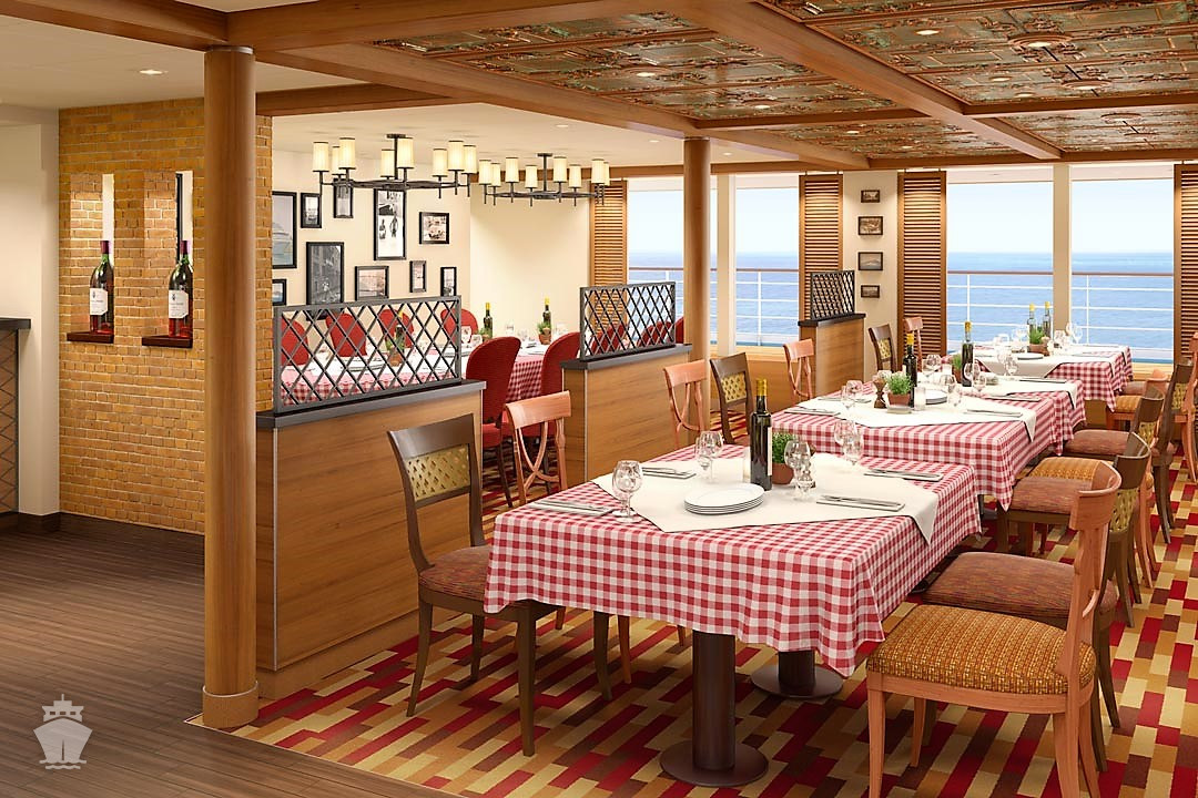 - Bufetová reštaurácia Lido Marketplace s Carnival Deli option, Pizzeria del Capitano, the á la carte Seafood Shack, e nový Swirls soft.