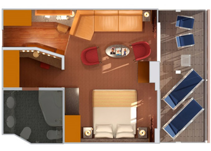 VS - Suite Vista 22 m² + balkón 20 m². 4. až 8. paluba vzadu. Výhody Suite. 4 836 € 2 418 € za osobu