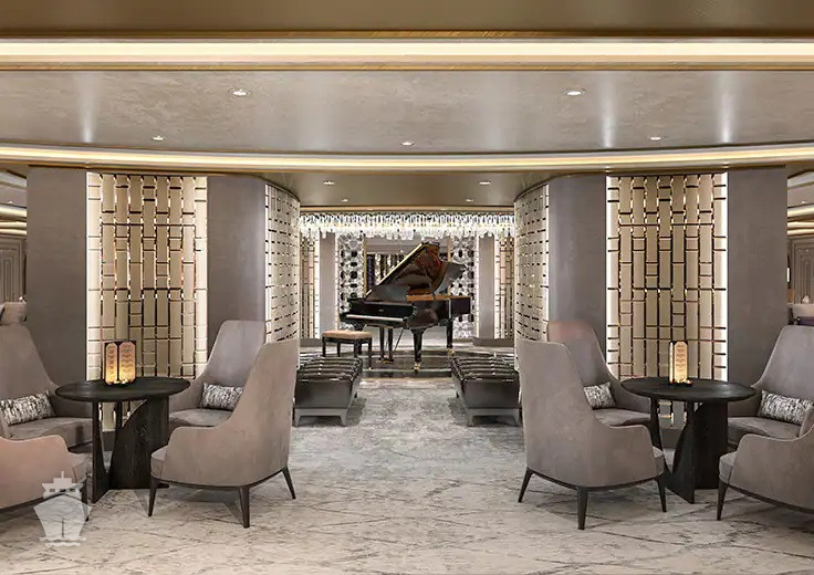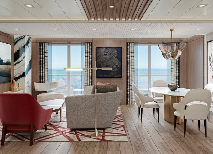 - Apartmán Palatial Owner’s Suite a horná časť lode Library sú exkluzívne navrhnuté firmou Ralph Lauren Home
