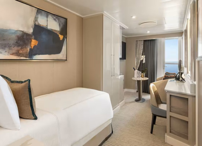 S - Kajuta s balkónom Concierge Solo 21 m² + balkón 4 m². 9. paluba. Max 1 osoba. Výhody kategórie Concierge. | 14 438 € 7 219 € za osobu |