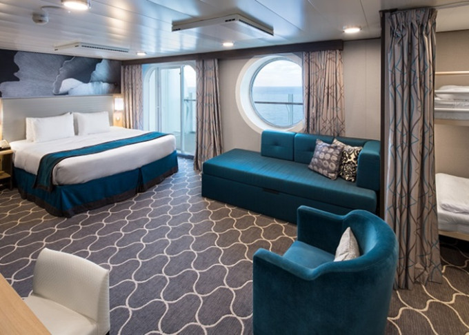 | J4 - Junior Suite s balkónom 26,5 m² + balkón 7,5 m². Max 5 osôb. Výhody Royal Suite Sea Class. | 5 112 € 5 112 € za osobu | ||