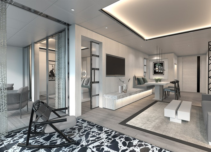 PS - Penthouse Suite 128 m² + balkón 18 m². 2 spálne, 2 kúpeľne (1 s vírivkou). 12. paluba. Max 6 osôb. Výhody Suite Retreat. | 30 545 € 30 545 € za osobu |