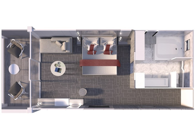 CS - Celebrity Suite 37 m² + balkón 9 m². 11/12. paluba. Max 4 osoby. Výhody Suite Retreat. | 22 647 € 7 549 € za osobu | ||