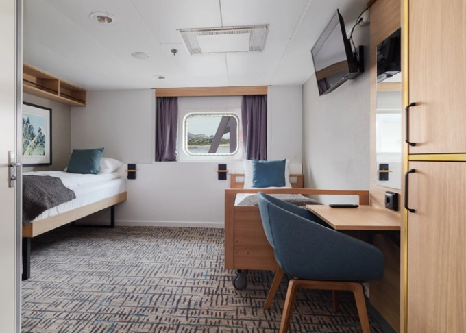 | P2D - Vonkajšia kajuta Arctic Superior 11 m². Neotvárateľné okno. Manželská posteľ, Tv, varná kanvica. Horná paluba. Max 2 osoby. | 4 382 € 2 191 € za osobu | ||
