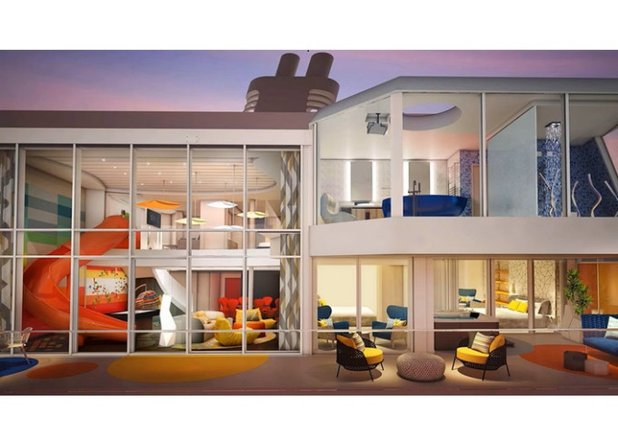 OS - Owner’s Suite 50 m² + balkón 24 m². 2-podlažný apartmán. Max 4 osoby. Výhody Royal Suite Sky Class. 6 644 € 1 661 € za osobu