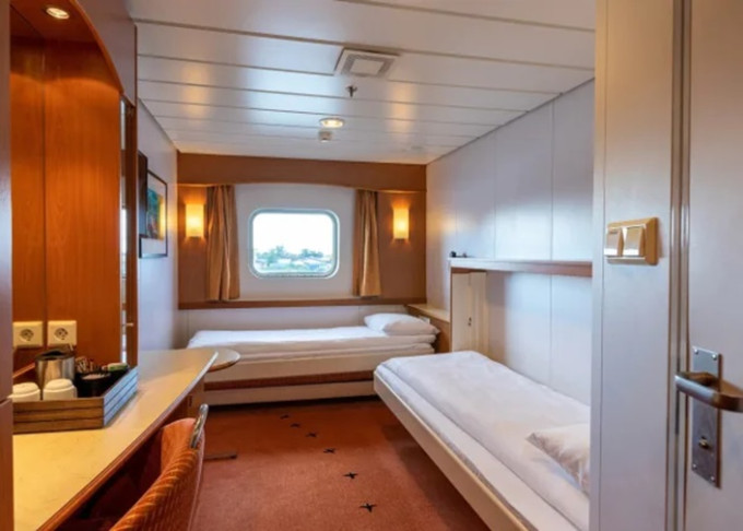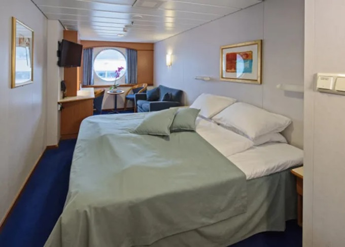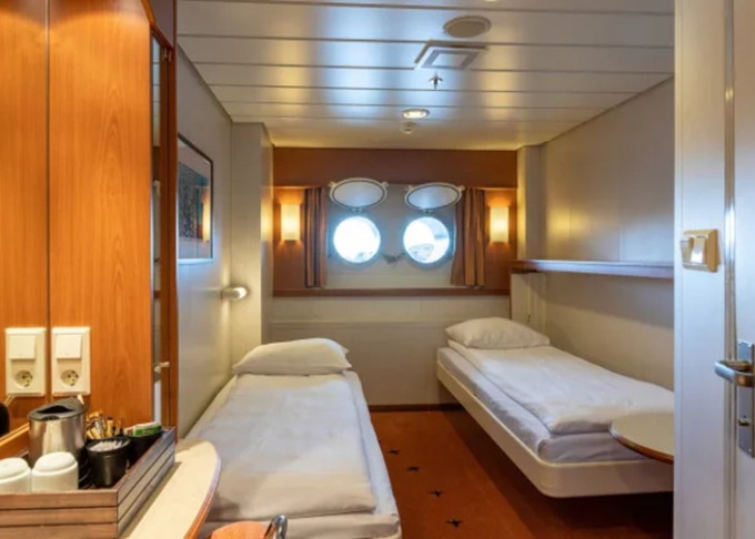 P2 - Vonkajšia kajuta Arctic Superior 10-11 m². Neotvárateľné okno. Oddelené postele, Tv, varná kanvica. Max 2 osoby. 8 744 € 4 372 € za osobu