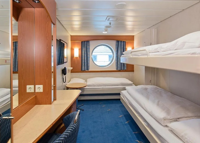 QJ - Vonkajšia kajuta Arctic Superior 16-17 m². Neotvárateľné okno s obmedzeným výhľadom, obývacia časť, TV, varná kanvica. Max 3 osoby 8 512 € 4 256 € za osobu