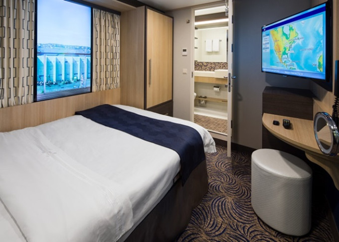1U - Vnútorná kajuta s virtuálnym balkónom 15 m². Obrazovka veľkosti balkónových dverí s premietaným výhľadom. Centrálne umiestnenie. Max 3-4 osoby. 1 671 € 1 671 € za osobu