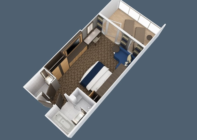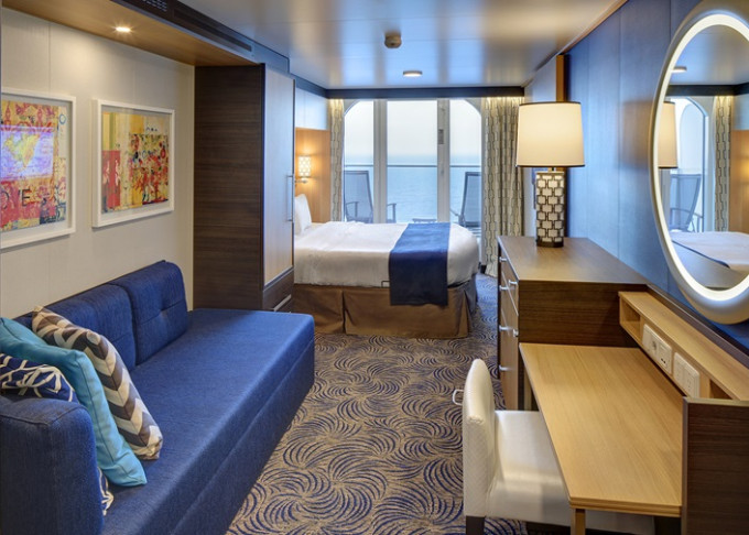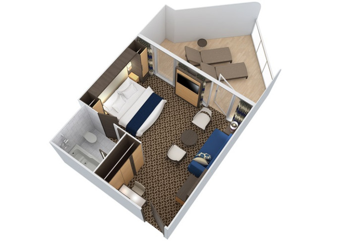 J4 - Junior Suite s balkónom 25 m² + balkón 7,5 m². Max 2 osoby. Výhody Royal Suite Sea Class. 3 692 € 1 846 € za osobu