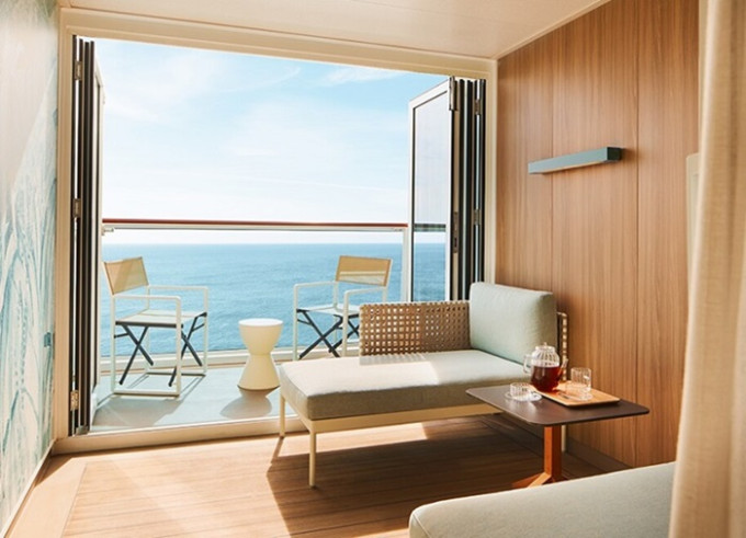 T1 MyCruise - Kajuta s balkónom Terrace 26 m² (vrátane lounge a balkónu). 8-9. paluba vpredu a vzadu. Max 2-4 osoby. Cenový model MyCruise. | 1 898 € 949 € za osobu |