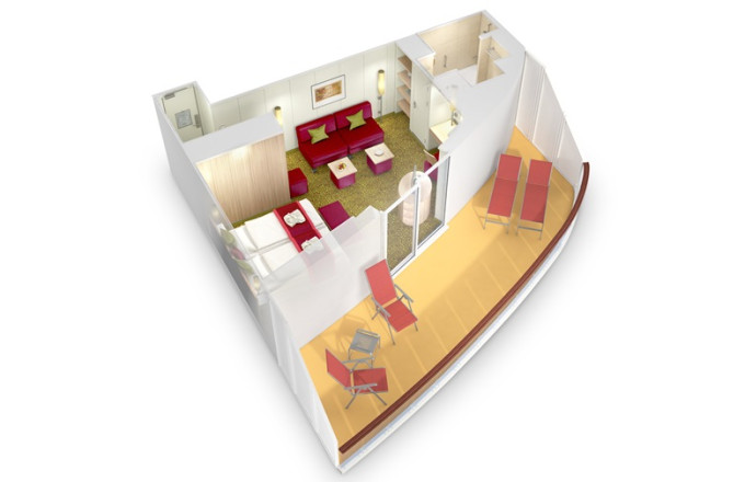 Vo všetkých kajutách sa nachádza regulovateľná klimatizácia, oddelené postele spojiteľné do jednej dvojitej, safe, kúpeľňa so sprchou, sušič na vlasy, telefón, Tv s plochou obrazovkou.