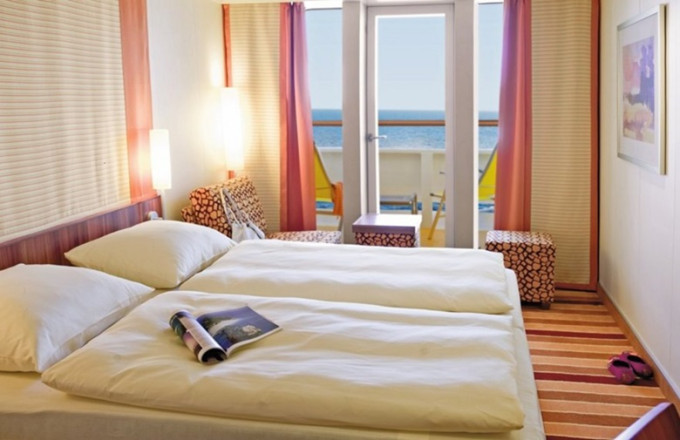 BA - Kajuta s balkónom PREMIUM od 17 m² / balkón od 3 m². Max 4 osoby. Cenový model Premium. | 3 300 € 1 650 € za osobu |