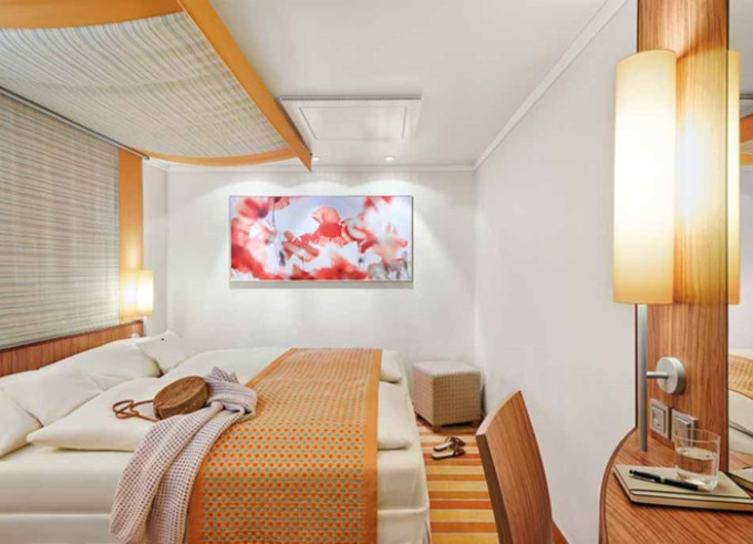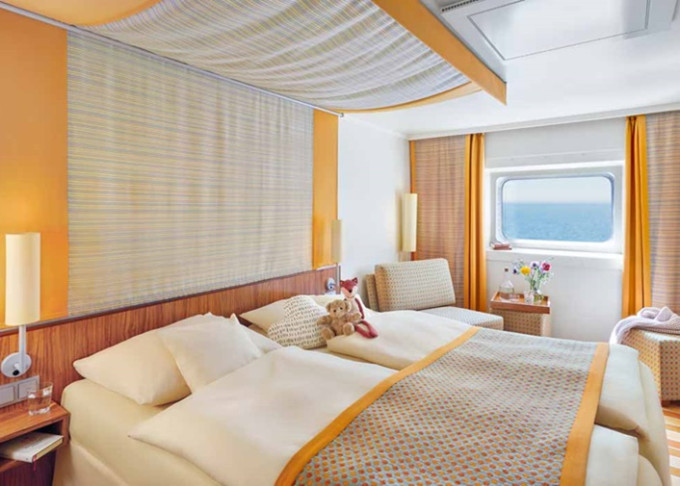 | CA - Vonkajšia kajuta PREMIUM / obmedzený výhľad 14-16,5 m². Neotvárateľné okno / obmedzený výhľad. 6. paluba. Max 2 osoby. Cenový model Premium. | 1 790 € 895 € za osobu |