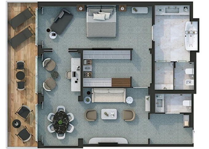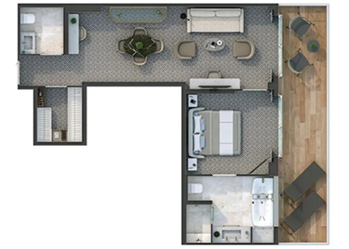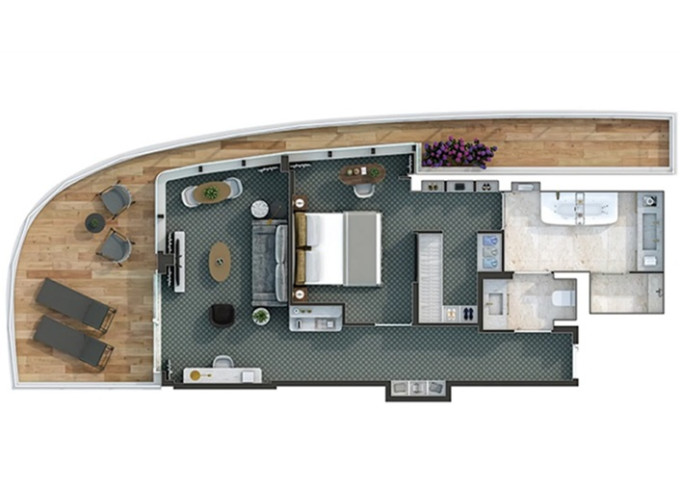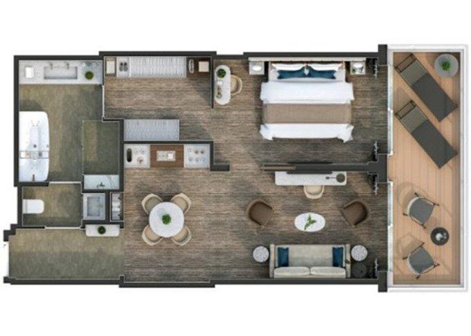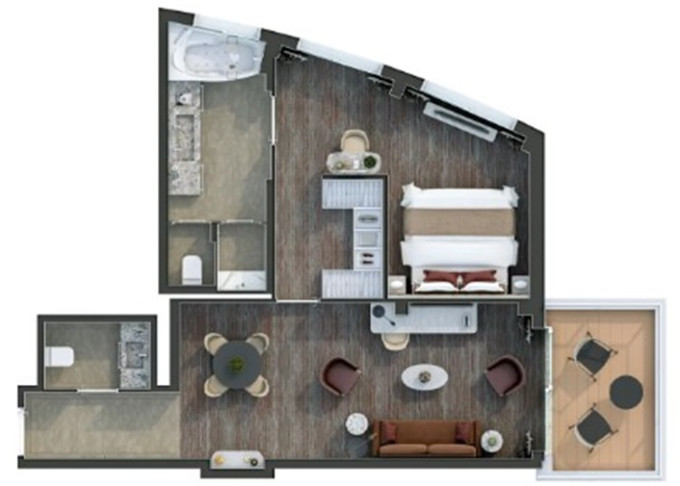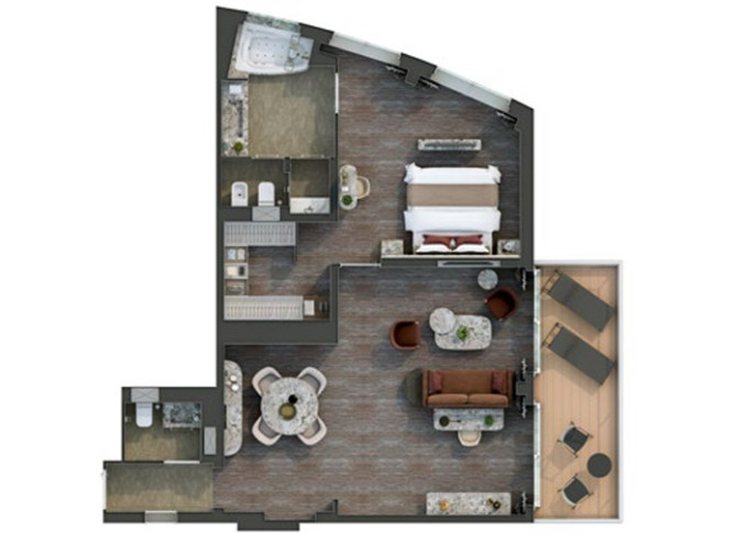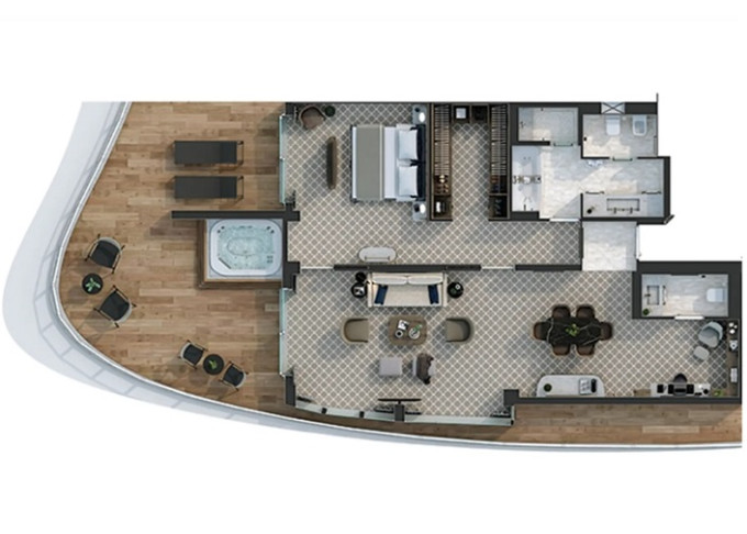 O1 - Owner's 1 Suite 98 m² (vrátane balkóna 16 m²). Spálňa, oddelená obývacia a jedálenská časť, kúpeľňa s vírivkou. 8. paluba stred. Max 3 osoby. | 38 800 € 19 400 € za osobu |