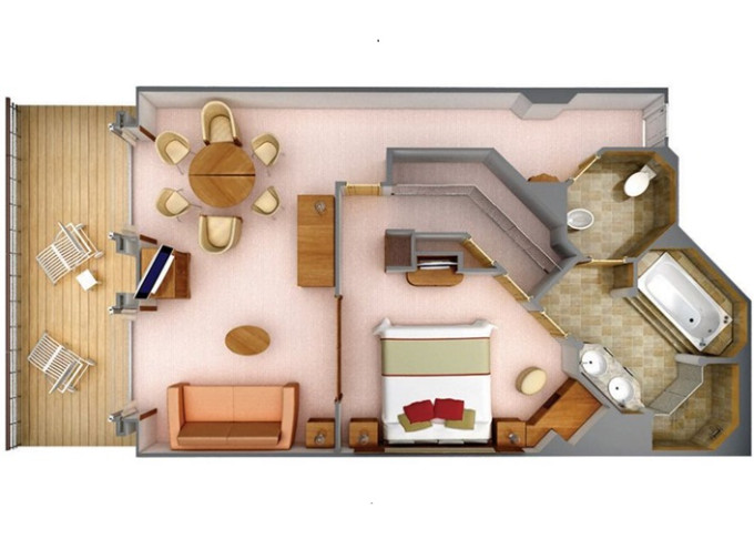 CV - Classic Veranda Suite 29 m² + balkón 6m². Spálňa s oddeliteľnou obývacou časťou. 5,6. paluba. Max 3 osoby. | 19 400 € 19 400 € za osobu | ||