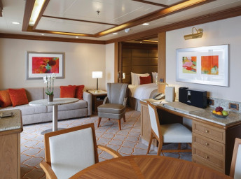 R1 - Royal Suite 1 92 m² (vrátane balkóna 12 m²), Spálňa s obývacou a jedálenskou časťou. 7. paluba vpredu. Max 3 osoby. | 41 400 € 41 400 € za osobu |