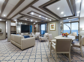 R2 - Royal Suite 2 127 m² (vrátane 18 m² balkónov). Royal Suite prepojená s Veranda Suite. 7. paluba vpredu. Max 5 osôb. | 89 400 € 29 800 € za osobu |