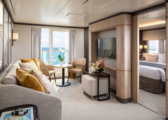 B6 - Suite s balkónom 37 m² + balkón 11 m². 9,15. paluba. Max 3-4 osoby. Spálňa, obývacia izba, mramorová kúpeľňa s vírivkou. Výhody Suite. | 9 920 € 4 960 € za osobu |