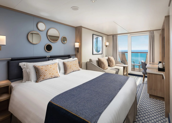GX - Menšia kajuta s balkónom 13 m² + balkón 2 m². 9. až 15, 17. paluba. | 4 710 € 2 355 € za osobu |