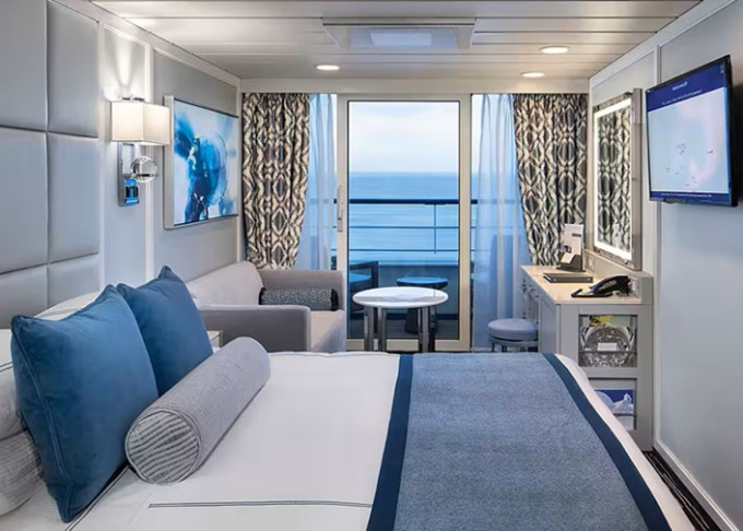 Všetky kajuty a apartmány sú plne vybavené všetkým pohodlím. Mäkké textílie a elegantný nábytok v pokojných tónoch zeme a oceánu. Každá kajuta je vybavená zásuvkami USB. Minibar je naplnený nealko nápojmi (bez príplatku).
