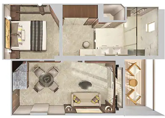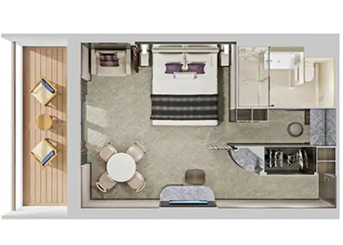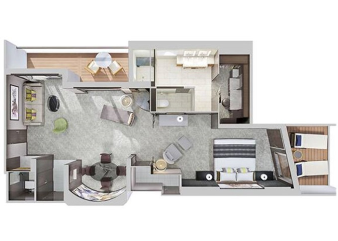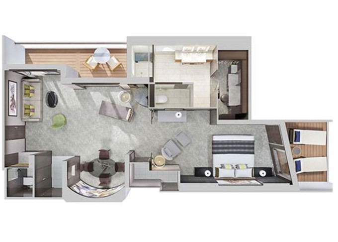 M1 - Club Suite Aft-facing 25-39 m² / balkón 5-7 m². 11. paluba - vpredu. Max 4 osoby. Výhody Club. | 5 716 € 2 858 € za osobu | ||
