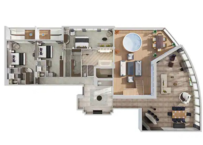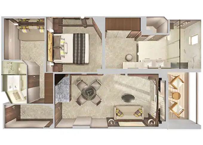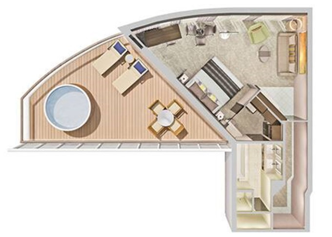 H3 - The Haven Deluxe Owner's Suite 77 m² / balkón 14 m². 10. paluba - vpredu. Max 4 osoby. Výhody The Haven. | 17 966 € 8 983 € za osobu |