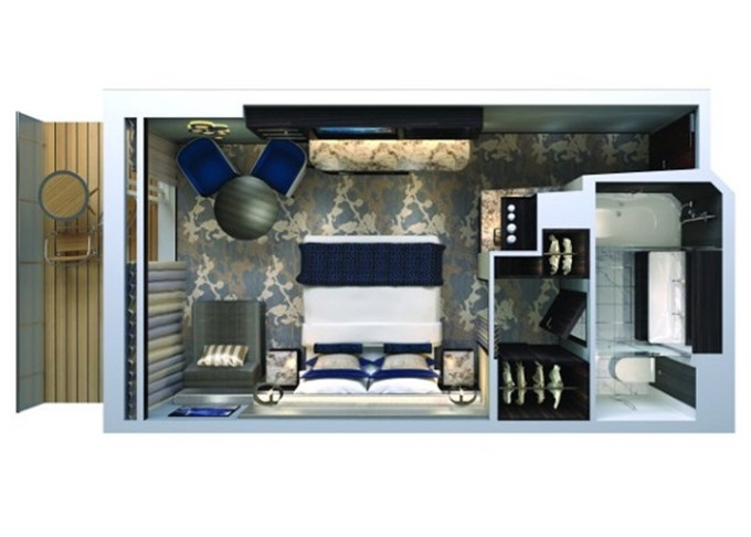 T1 - Vnútorná kajuta Studio Single 9 m². 10,11,12. paluba. Max 1 osoba. 1 104 € 552 € za osobu