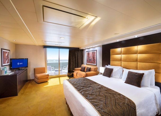 YC1 - Yacht Club Deluxe Suite 23-29 m² + balkón 4-6 m². 15-16. paluba. Cenový model MSC Yacht Club. | 9 228 € 3 076 € za osobu | ||