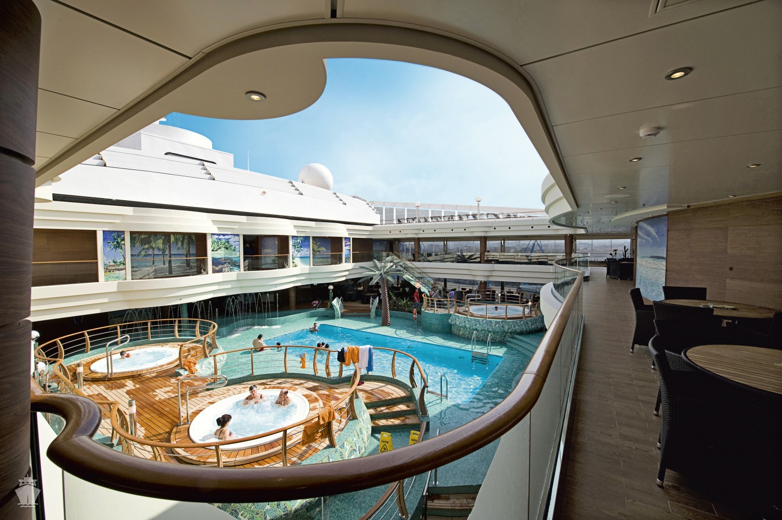 - Používanie zariadení lode: bazény, vírivky a lehátka, plážové osušky, fitnescentrum ...